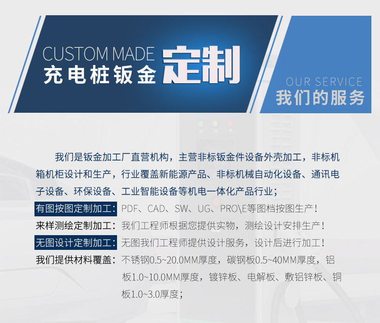 金美特機(jī)械制造是鈑金加工廠直營(yíng)機(jī)構(gòu),主營(yíng)非標(biāo)鈑金件設(shè)備外殼加工,非標(biāo)機(jī)箱機(jī)柜設(shè)計(jì)和生產(chǎn),行業(yè)覆蓋新能源產(chǎn)品、非標(biāo)機(jī)械自動(dòng)化設(shè)備、通訊電子設(shè)備、環(huán)保設(shè)備、工業(yè)智能設(shè)備等機(jī)電一體化產(chǎn)品行業(yè);